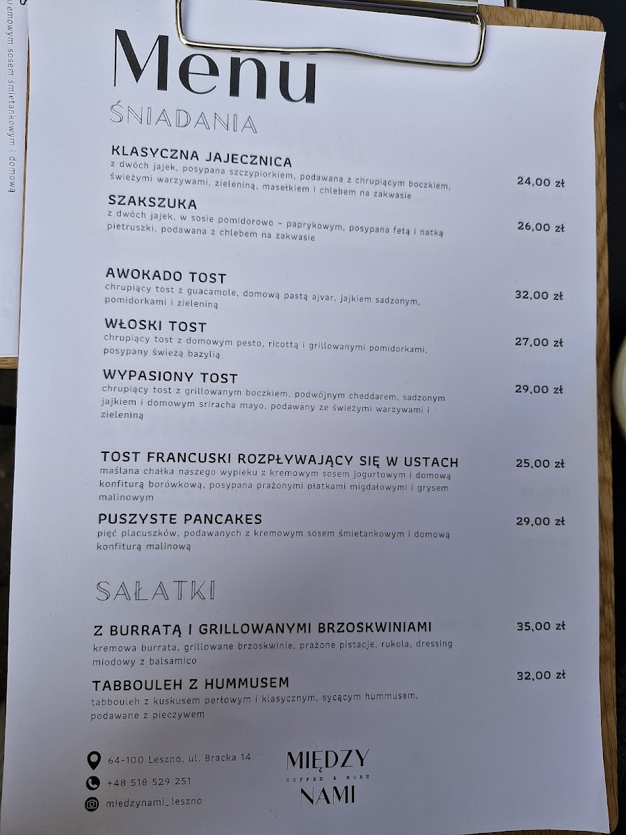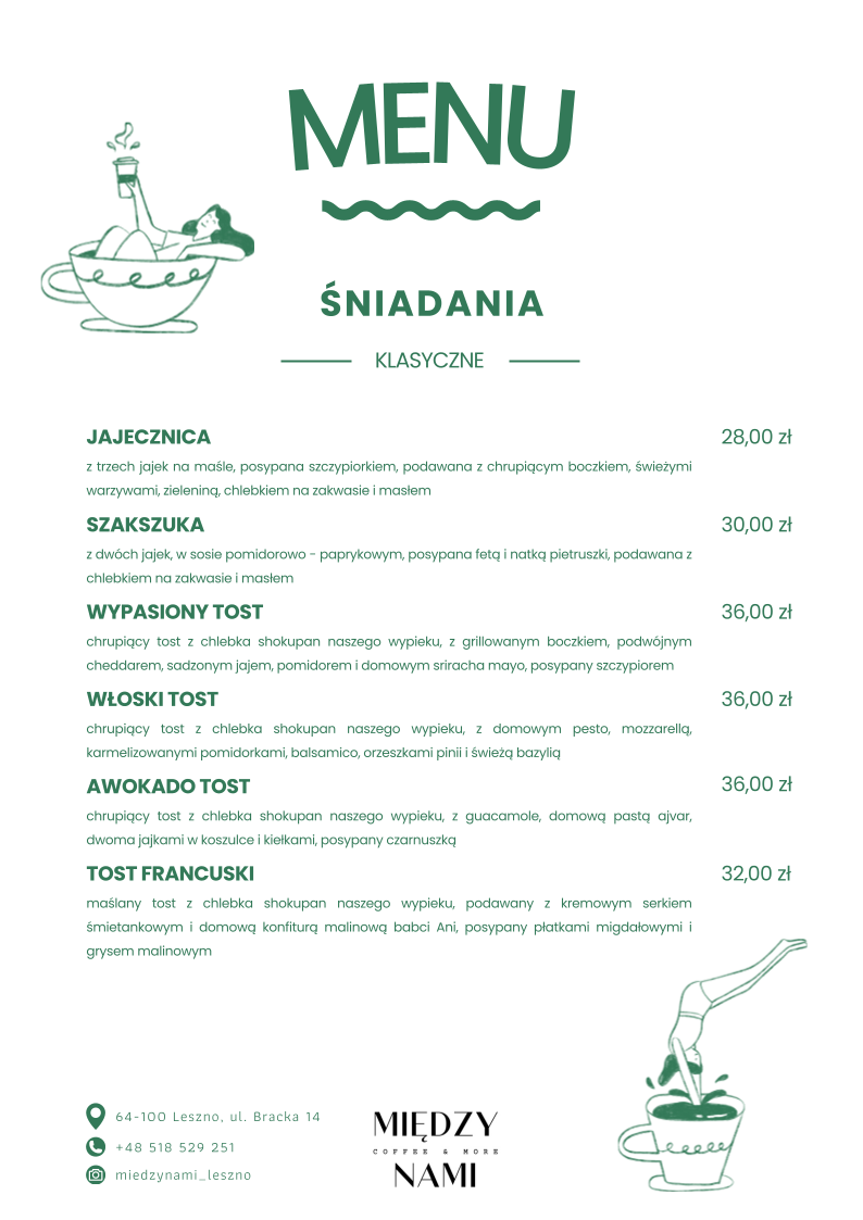 Między Nami | Kawiarnia | Śniadania Menu